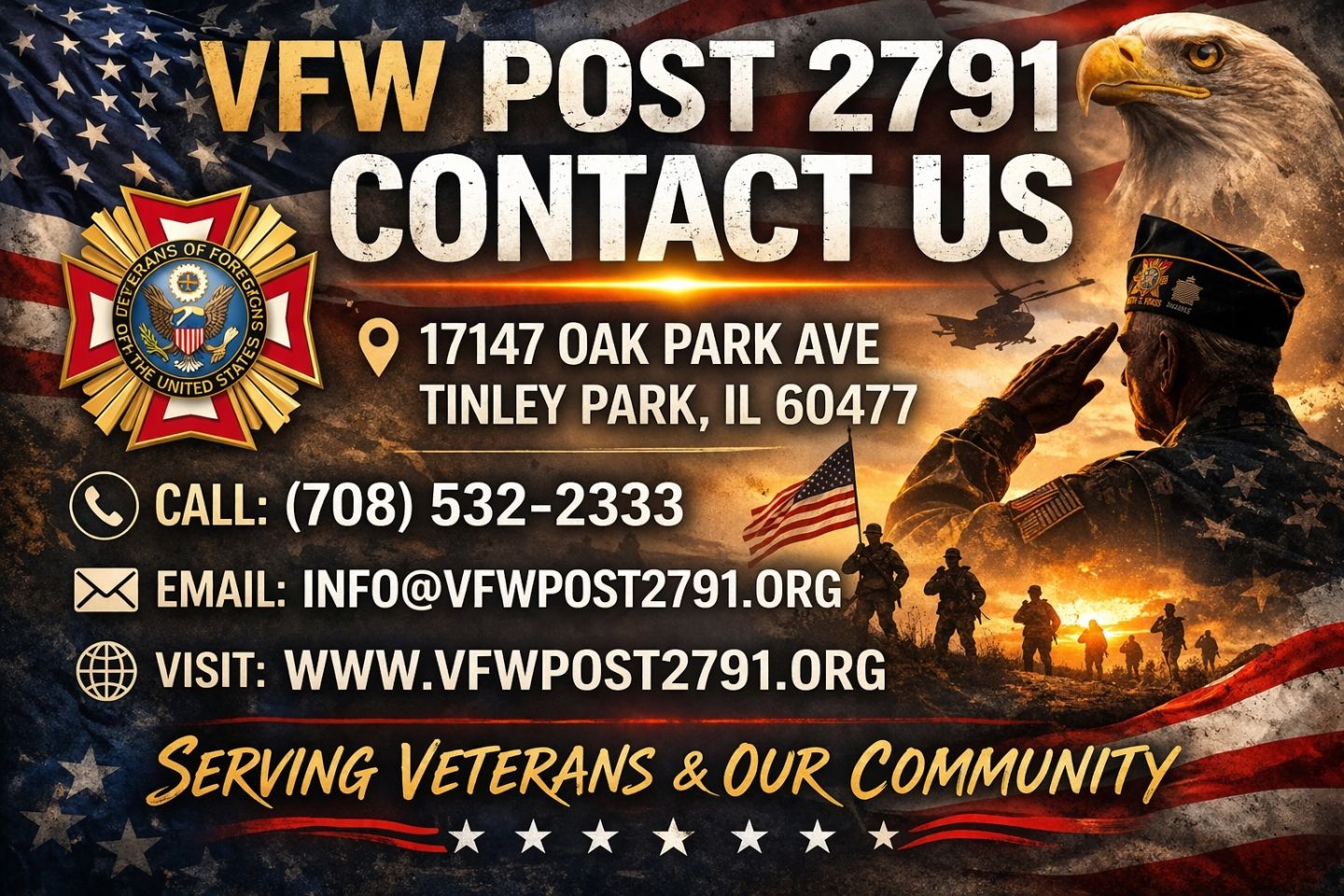 *Sign up at VFW Post 2791 or message us at 708-532-2333