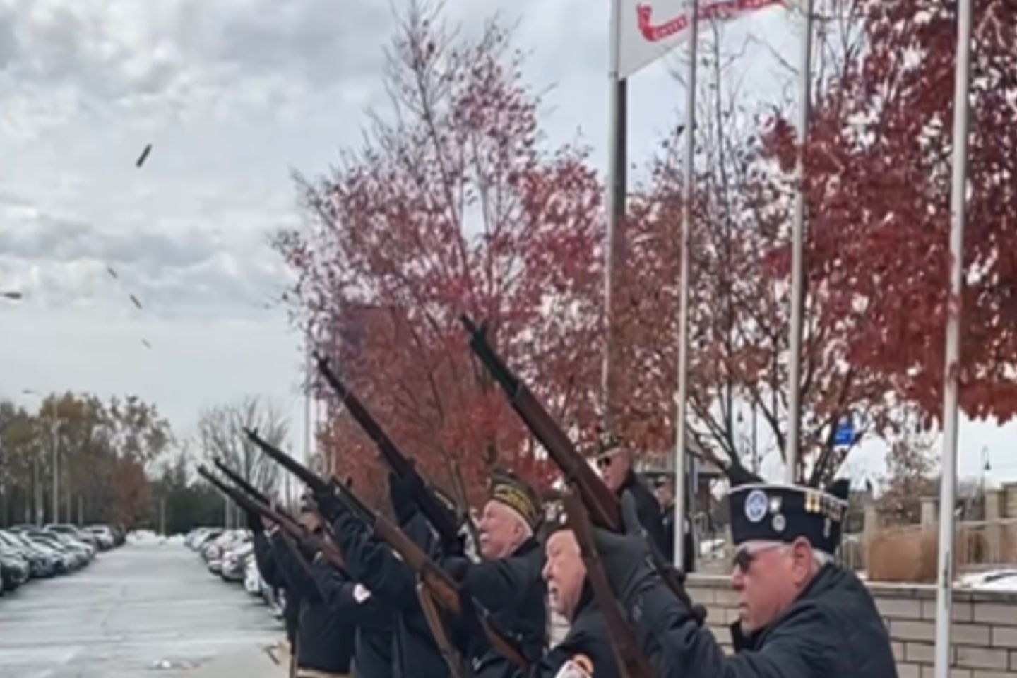 🔥 MAY THE BEST CHILI WIN! 🔥 The Honor Guard conducting a Rifle Salute during the Veterans Day Celebration at the General Patrick Rhea Plaza. Just look at that Brass fly.